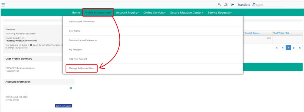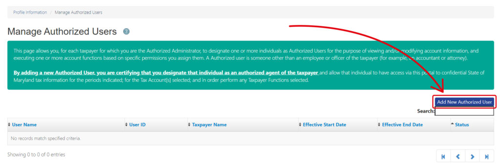 To allow Beyond to file and pay your Maryland withholding taxes, you must add us as an Authorized User in your Maryland Tax Connect account: