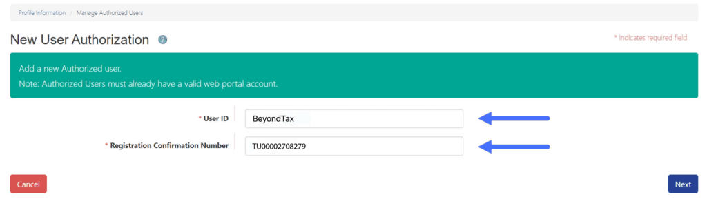 4. Enter Beyond’s User ID and Registration Confirmation Number: