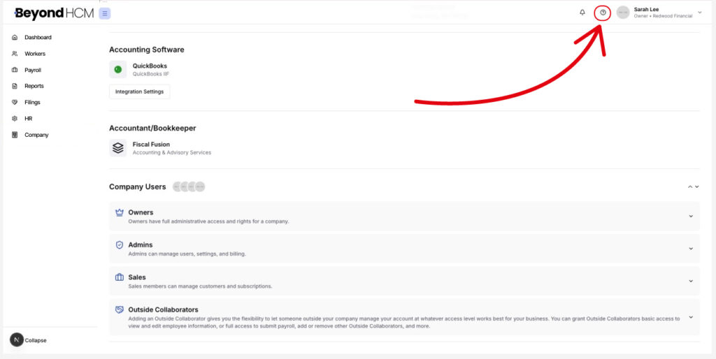 When you’re logged into your company dashboard, click the “?” icon at the top of the screen, then select View My Requests. From here, you can review existing tickets, submit a new request, or start a chat by selecting Contact Us.